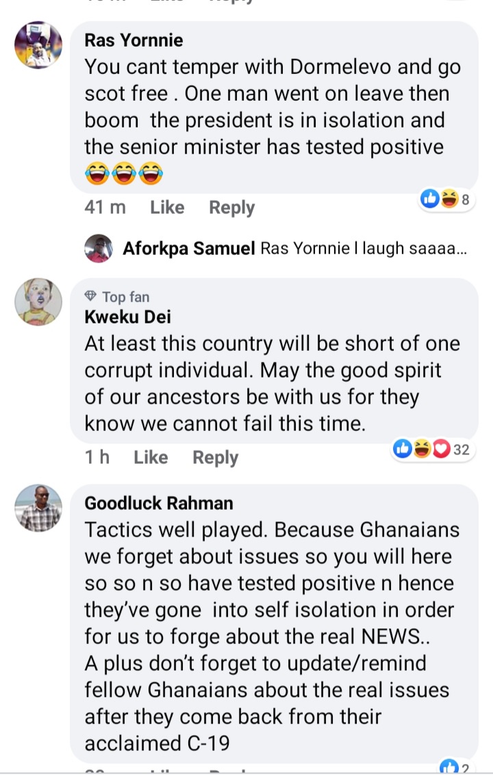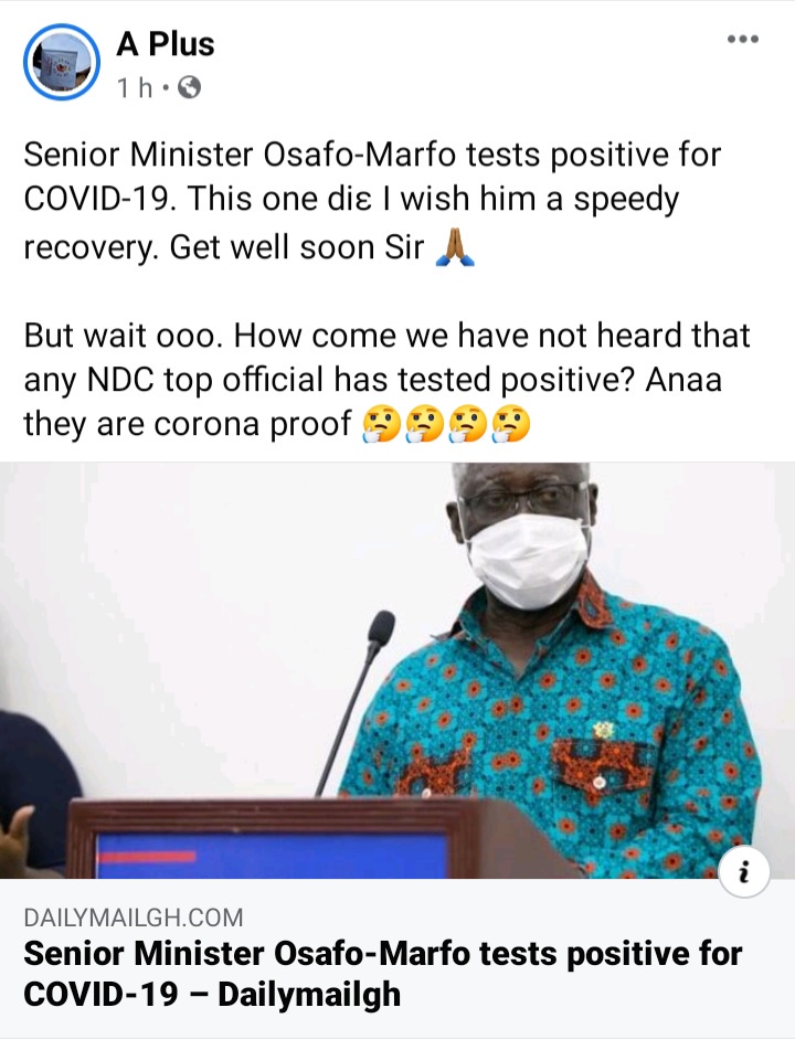 Aplus has asked a very intriguing question on his Facebook page and the reactions are interesting. He posted the news of senior minister having COVID-19 and asked why no NDC top official has contracted COVID-19.
