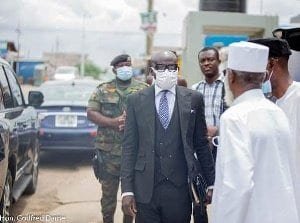 Mr Godfred Dame’s recent outing with the soldier by his side was a visit to the Chief Imam, Sheikh Osman Sharubutu on Tuesday, May 18.