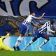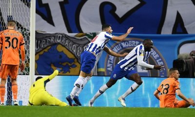 Moussa Marega of FC Porto celebrates with Mehdi Taremi after scoring his team’s second goal during the UEFA Champions League Round of 16 match between FC...