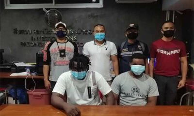 Two Nigerian men have been arrested in this southern island province for suspected involvement in a so-called romance scam. Pol Col Akanit Danpitaksat, the Patong police...