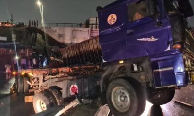 An articulated truck with registration number GT 8387 X said to be carrying gallons of engine oil has skidded off the Kwame Nkrumah circle...