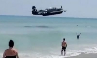 A World War 2 bomber pilot landed in the sea metres from swimmers after the plane suffered a mechanical failure. Beach goers watched in...