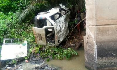 At least five persons including a newly wedded man, were confirmed dead after an 18-seater bus plunged into a river in Aponmu village, Akure South...