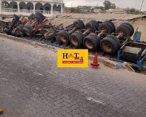 A driver’s mate of a trailer loaded with cement bags has met his untimely death after the trailer overturned at Inchaban in the Western region....