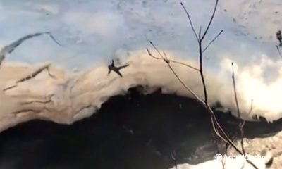 This hiker was spotted walking on the snowy slopes of the Catskill Mountains in New York on March 30, until he slipped and fell...