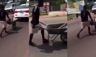 A new video, which is currently going viral, has shown a young man pushing a wheelbarrow on a major road and even joining and obeying...
