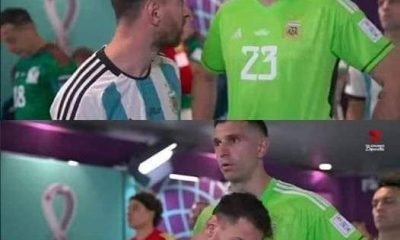 This is the photo just before the Mexico game, Emi Martínez and Messi were in the tunnel and Emi was way too nervous because he concede both the shot on...