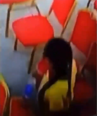 The lady was spotted walking into an uncaptured part of the church and walking out with the phone which she pushed into the back pocket of her trouser.