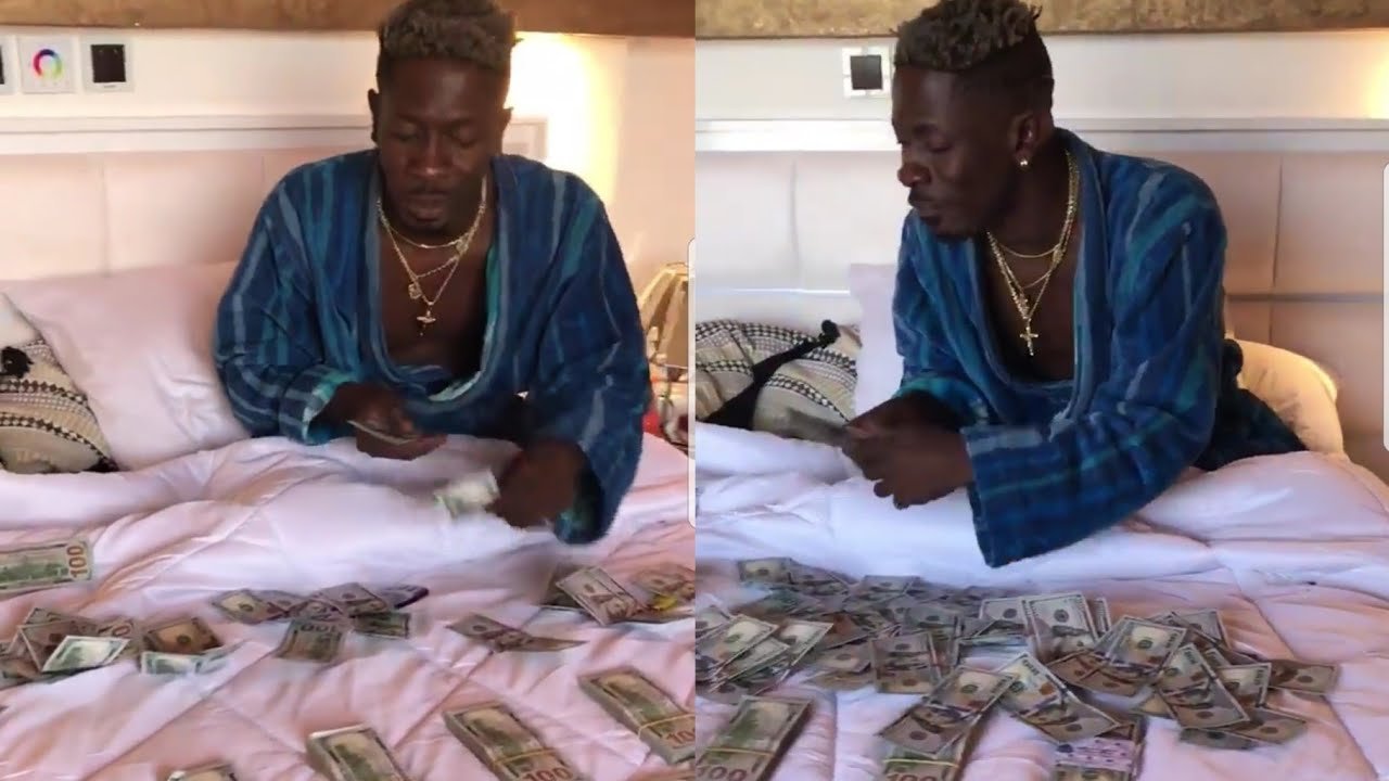 Shatta Wale puts his Bedroom on Display; Flaunts Bundles of Dollars on his bed