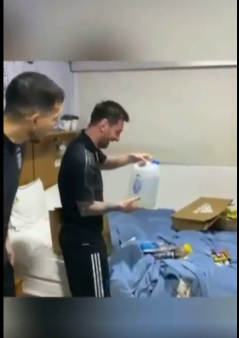 He was surprised with several funny gifts in packs of bags with one of them containing a white plastic gallon with ” holy water” in it. While bringing out the gifts, Messi could be seen laughing at the sight of some of the gifts.