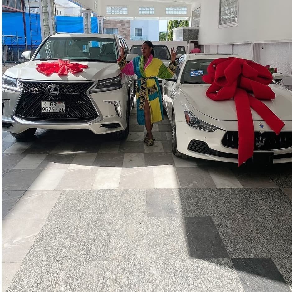 She could be seen with all joy as she posed with her brand new expensive Lexus and Maserati cars.