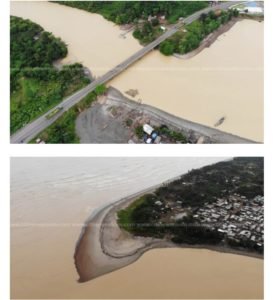 Aerial photographs of the river on Tuesday, May 12, 2020, show that illegal miners are having a field day as the colour of the River has changed from its natural state to brown.