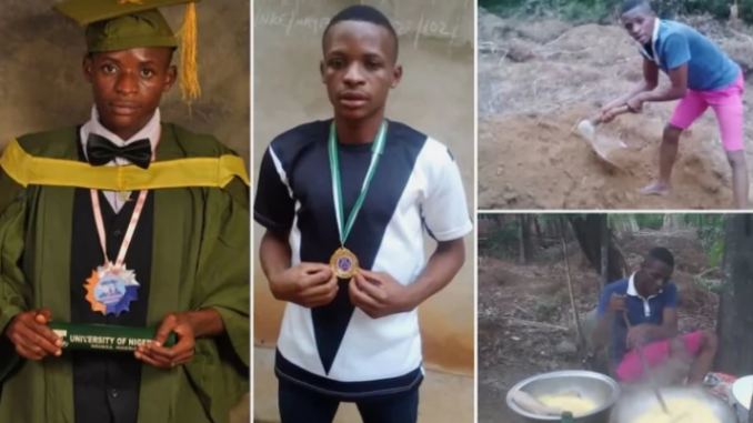 Reports say Emmanuel Nworie from Nigeria graduated with a CGPA of 4.92/5.00 from the University of Nigerian, Nsukka (UNN) but has not found the befitting white-collar job with his exceptional result as he would have loved to.