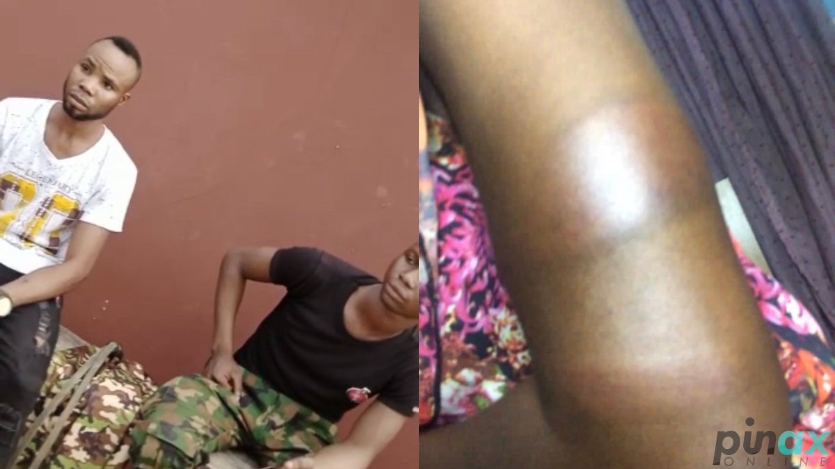 According to them the incident happened around 5pm at Sangotedo, Ogun State. The victim said that she look at them until one of the soldiers flogged her with koboko- horse whip.