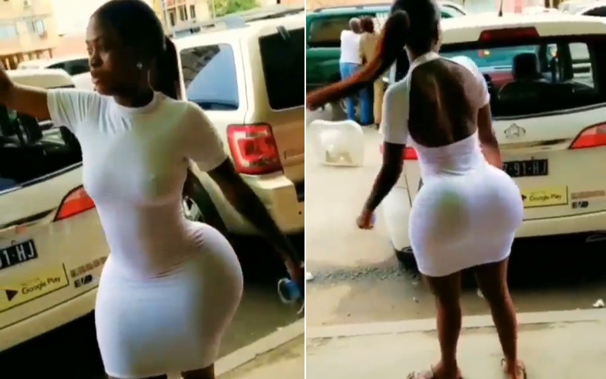 A lady, has caused a massive stir on social media after someone recorded a video of her dragging attention with her fake gargantuan figure clearly visible.