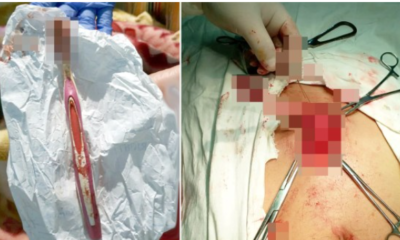 A bloodied toothbrush had to be removed from a man’s stomach after he swallowed it while cleaning the back of his throat. Doctors removed the 19cm-long...