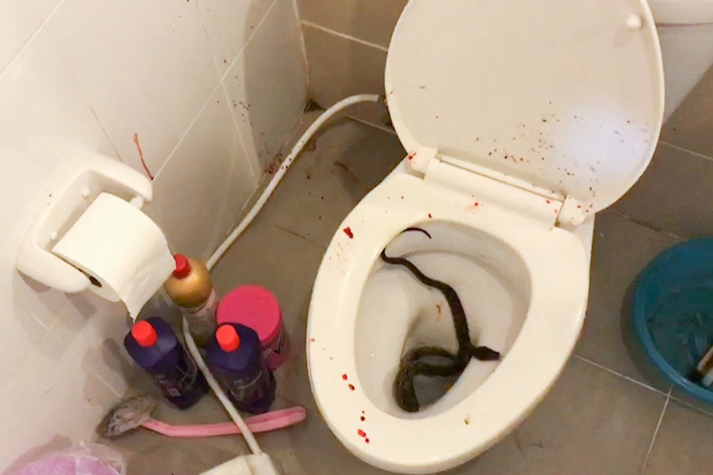 Masukarat recalls watching smartphone videos on the toilet when all of sudden he felt a searing pain in his nether region. The university student looked down to discover a nightmarish sight — a 4-foot python with its jaws clamped around the tip of his penis.