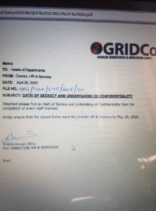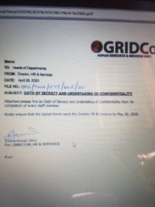 There is uneasy calm at the Ghana Grid Company (GRIDCO) as management is on the neck of employees to sign an oath of secrecy.