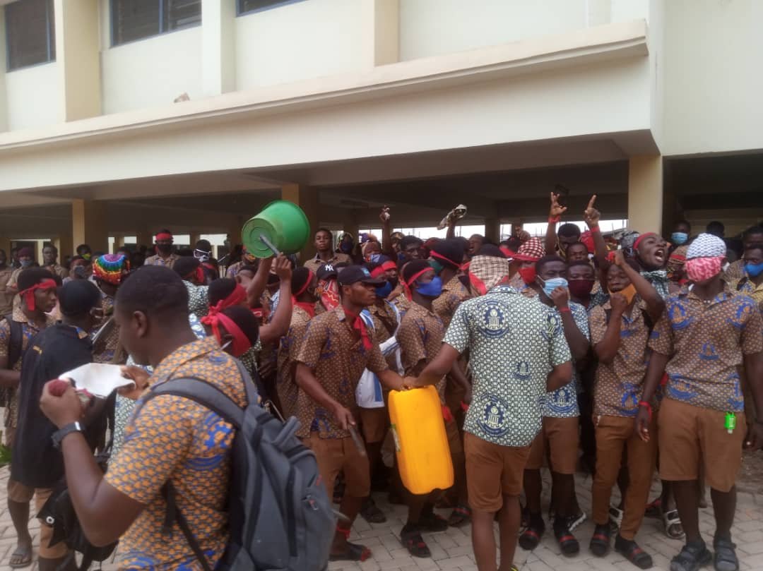 Videos: Students of KNUST SHS protest over the death of colleague who was neglected by their teachers for fear of contracting COVID-19